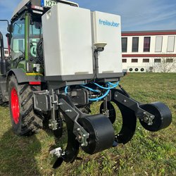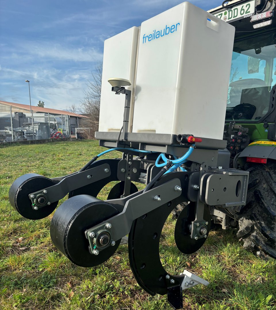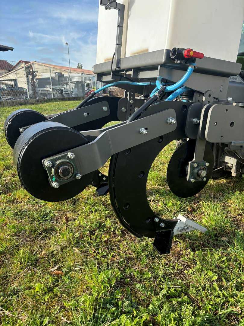 The subsoiler type Hektor is equipped with a tank, available in various volume sizes. Liquid fertilizer is directed into the soil through an electric pump via a pipe attached to the tine. The specially developed height-adjustable press roller seals the soil immediately after penetration. The press roller is individually attached to each tine. The application rate is controlled by a nozzle. The entire unit is controlled via an ISO-Bus system, ensuring precise fertilizer application with the Hektor.